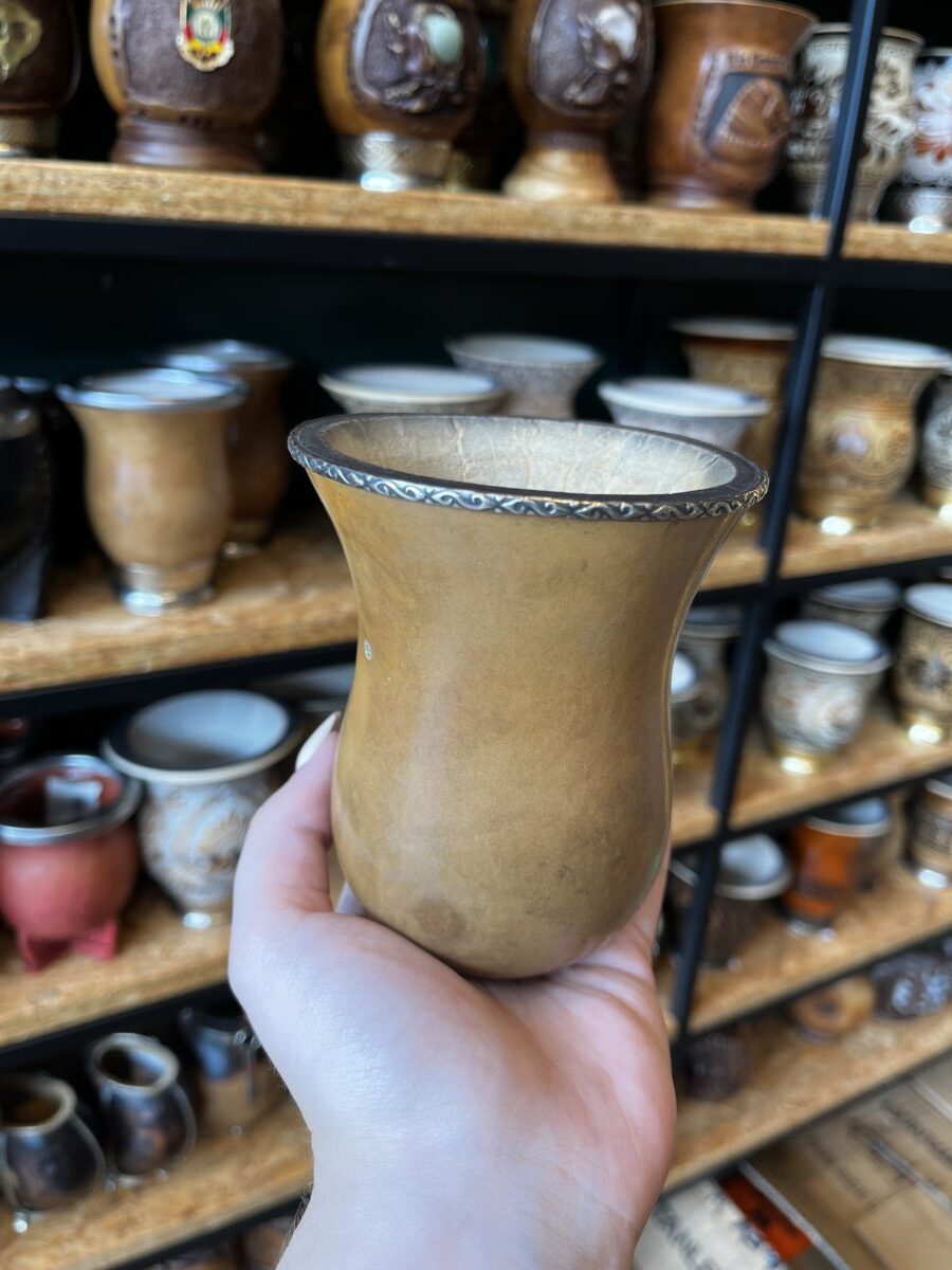 Cuia bago de touro clara, com virola em alpaca.