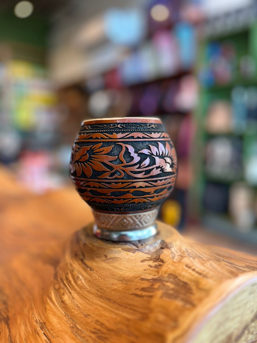 Cuia de Porongo em formato Coquinho com Trabalhado a Laser