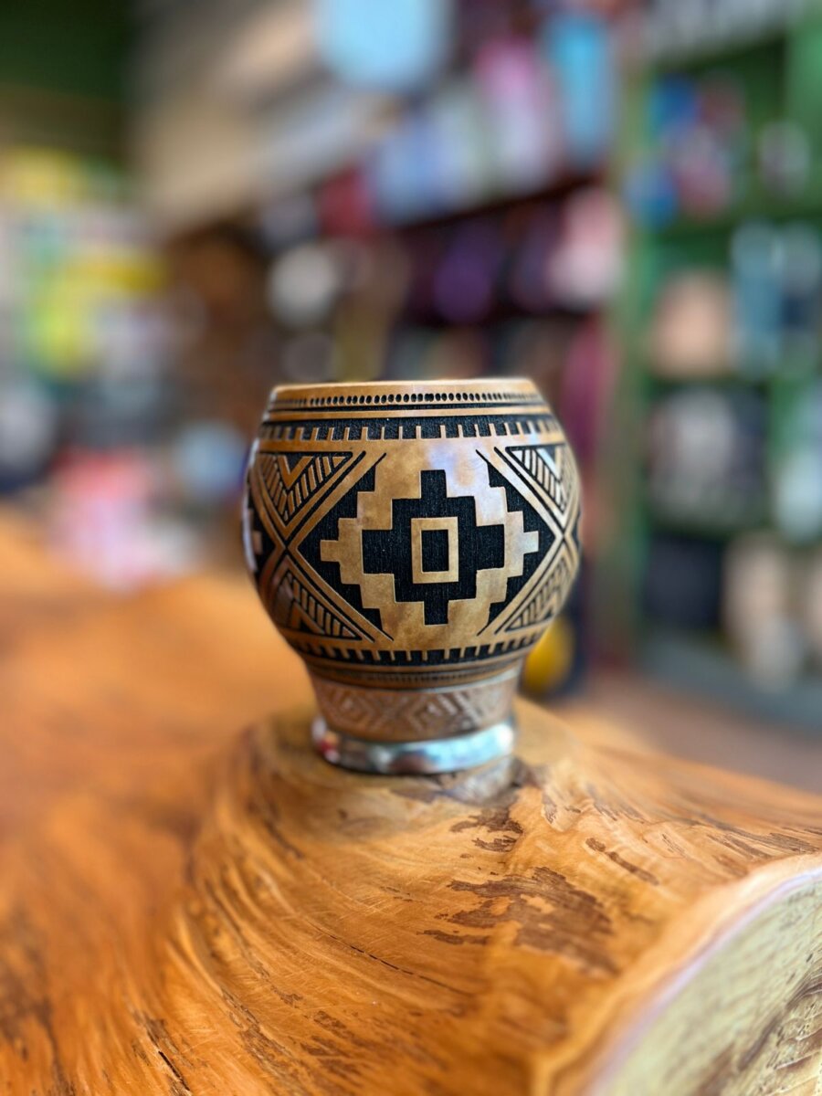 Cuia de Porongo em formato Coquinho com Trabalhado a Laser