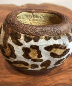 cuia gajeta forrada em couro animel print. altura aprox. 10cm