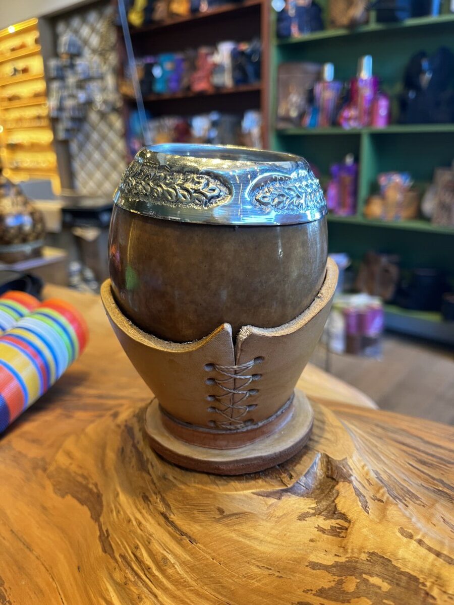 Cuia Torpedo Clara em Alpaca Cincelada com Suporte