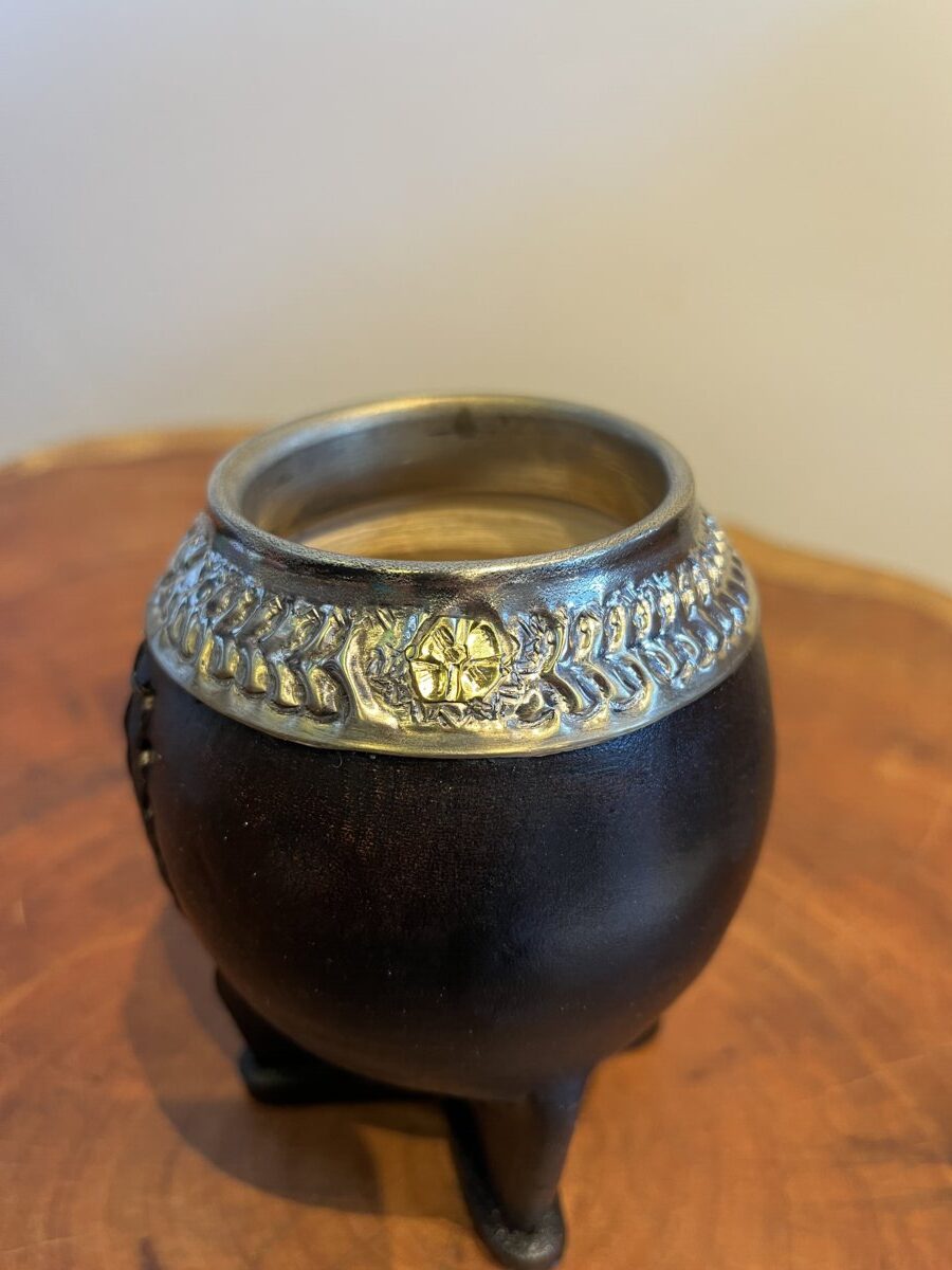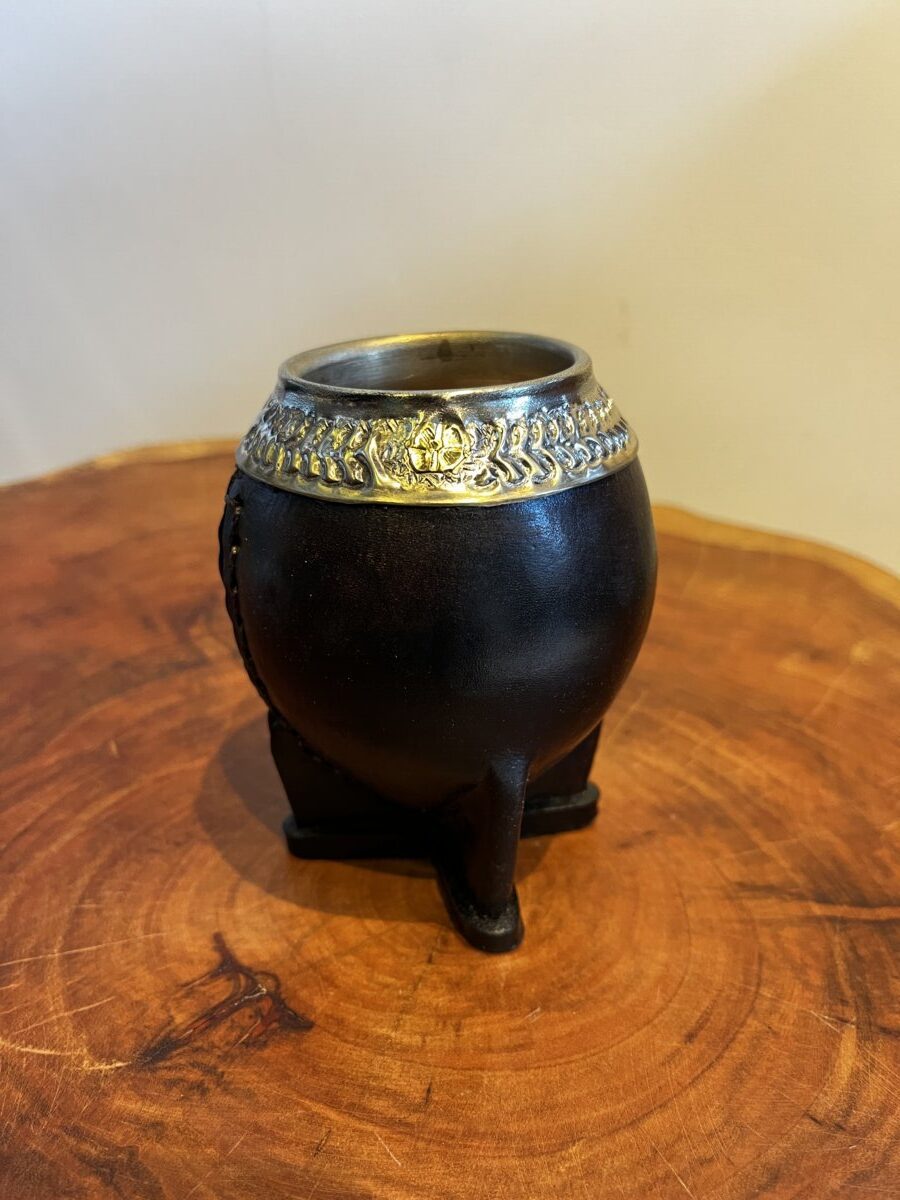 Cuia Uruguaia em couro com bocal em alpaca cincelada