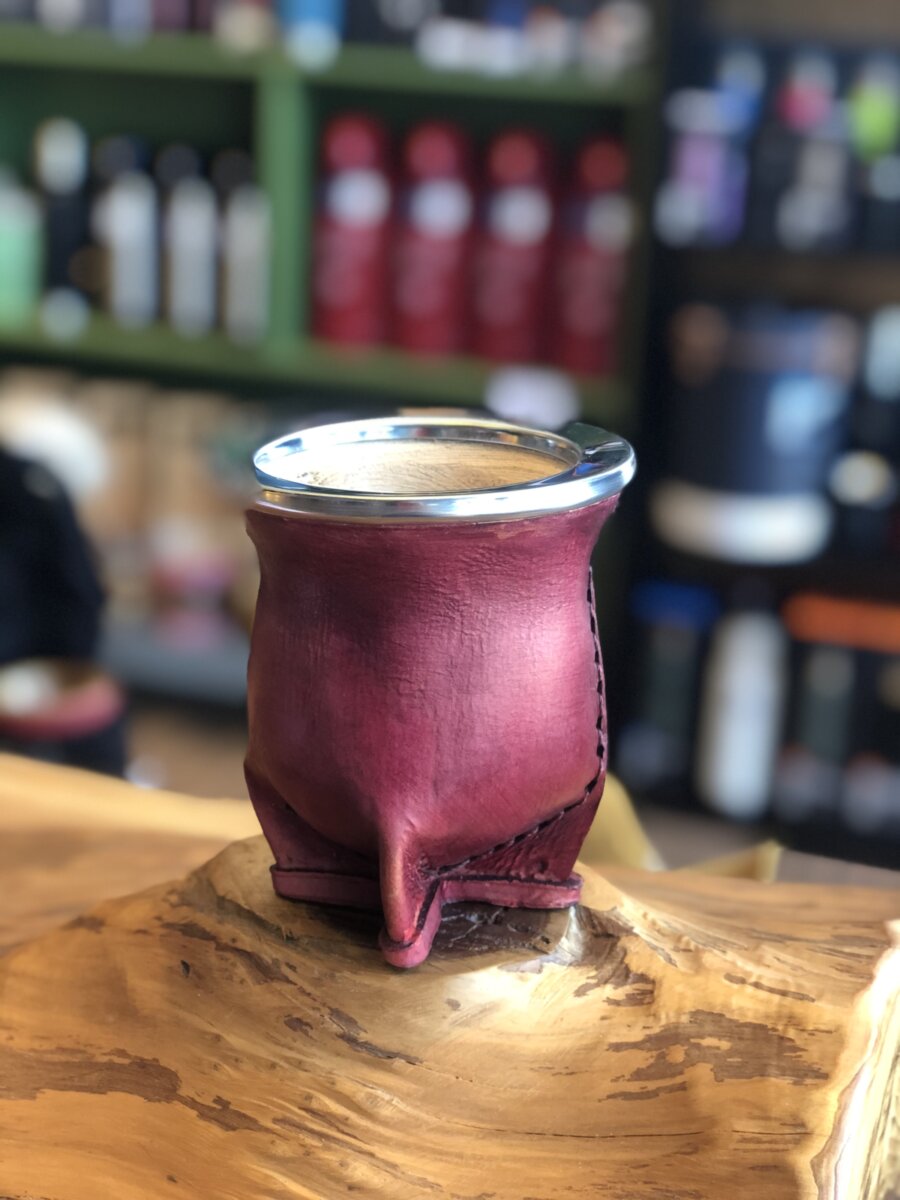 Cuia Uruguaia em couro com bocal cromado.