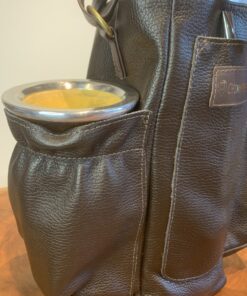 As mateiras em couro Farrapo são ideais para transportar seu kit de chimarrão de um modo prático e leve. Modelo para térmicas de até 1,8 litros.