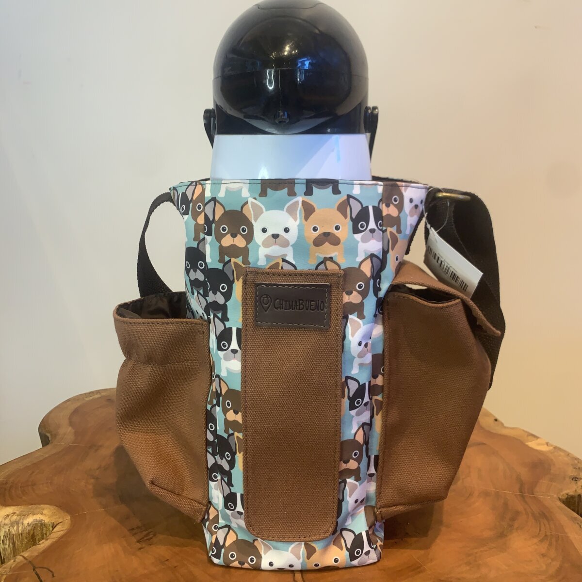 Possui bolsos para térmica, cuia, bomba de chimarrão e porta erva-mate. Modelo todo forrado com nylon para facilitar a limpeza e inibir a passagem de água.