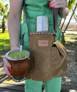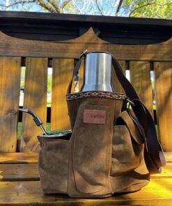 As mateiras em camurça modelo Galope são ideias para quem busca uma opção mais compacta e prática para carregar seu kit de chimarrão. Ideal para térmicas de até 1 litro. Possui bolsos para térmica, cuia, bomba de chimarrão, porta erva-mate e bolso extra para chave ou moedas. Modelo todo forrado com nylon para facilitar limpeza e inibir passagem de água.