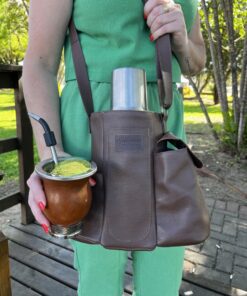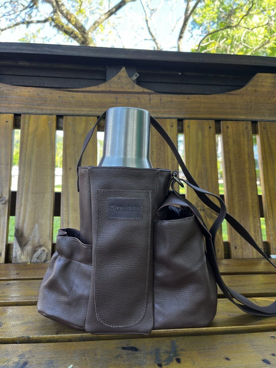 As mateiras em couro modelo Galope são ideais para quem busca uma opção mais compacta e prática para carregar seu kit de chimarrão. Ideal para térmicas de até 1 litro. Possui bolsos para térmica, cuia, bomba de chimarrão, porta erva-mate e bolso extra para chave ou moedas. Modelo todo forrado com nylon para facilitar a limpeza e inibir a passagem de água.