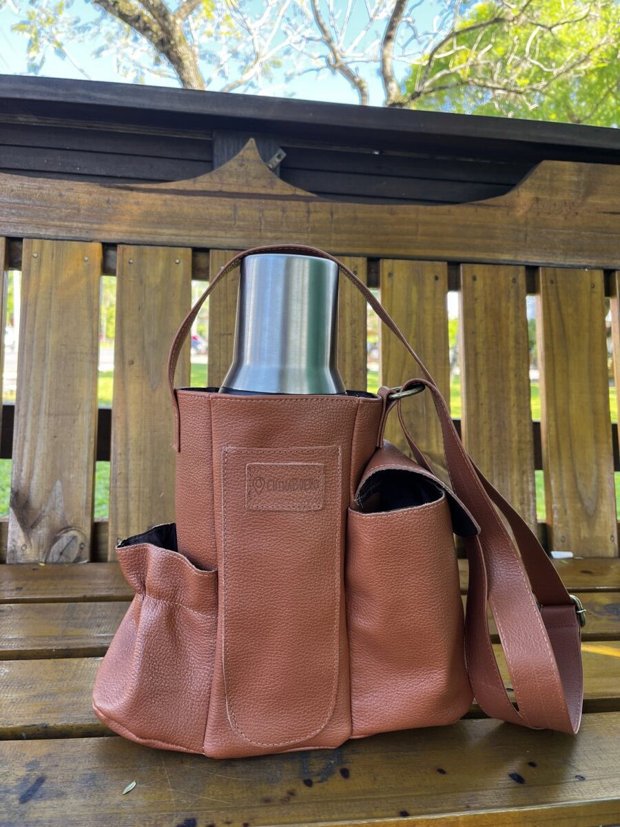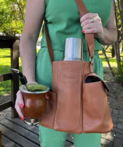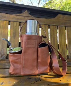 As mateiras em couro modelo Galope são ideais para quem busca uma opção mais compacta e prática para carregar seu kit de chimarrão. Ideal para térmicas de até 1 litro. Possui bolsos para térmica, cuia, bomba de chimarrão, porta erva-mate e bolso extra para chave ou moedas. Modelo todo forrado com nylon para facilitar a limpeza e inibir a passagem de água.
